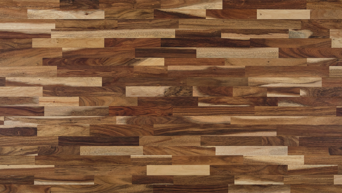 褐色の濃淡が美しい縞模様を描く重硬な心材部分と、成長が早い樹木らしい大きな辺材(白太)部分が混在し、無垢材ならではの素材感と様々な表情とが楽しめる樹種です。