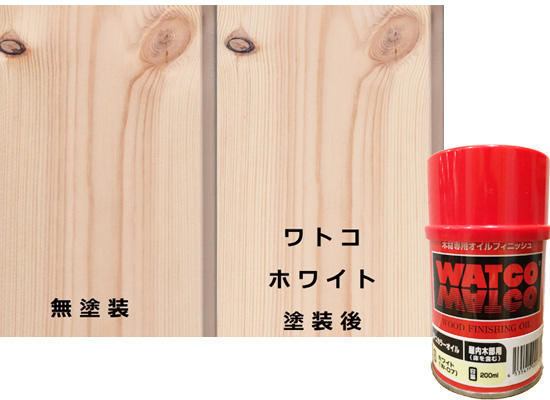 ■飴色に変化させたくない方は「WATCO」オイルのホワイト色を塗っていただくと色が濃くなるのを軽減することができます。