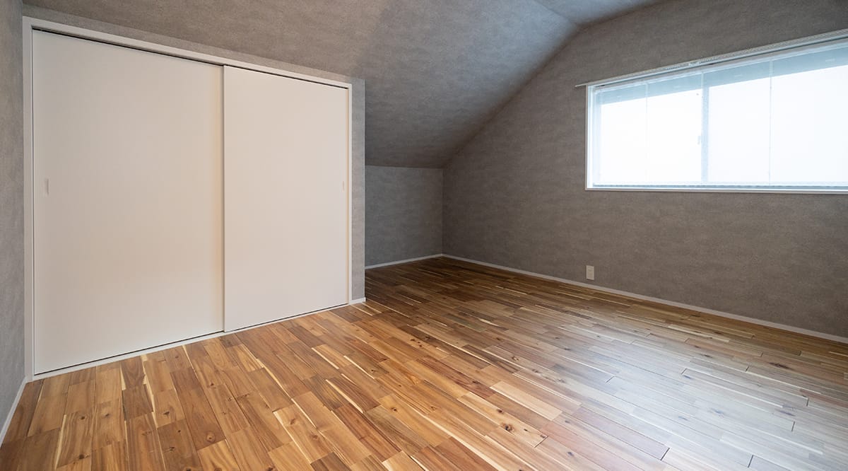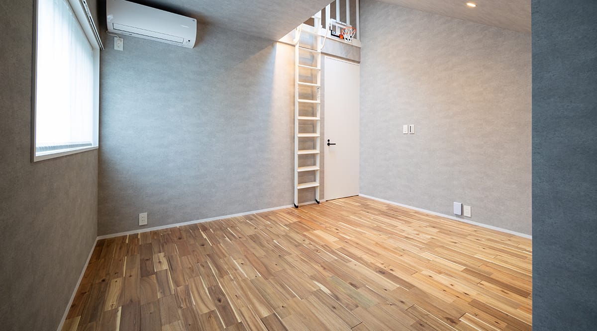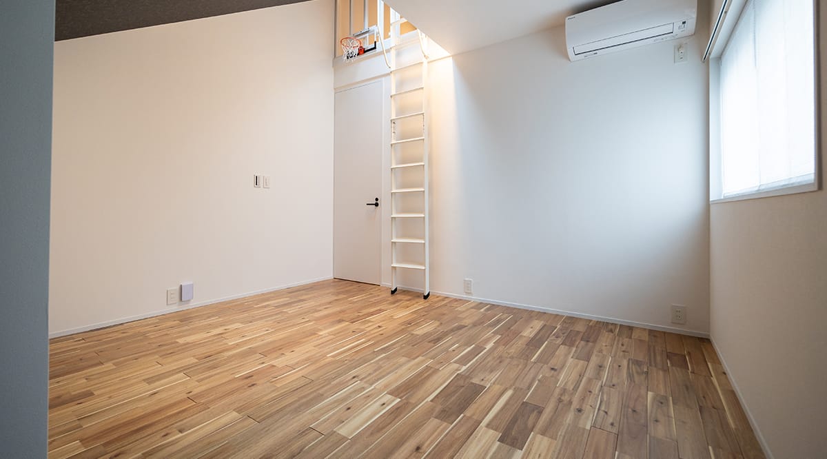 こちらのフローリングを使用されたのは、キッズルーム。表情が様々で面白味のある材を...ということでしたが、他のお部屋で使用されたオークではなく、少し足当たりのソフトなアカシア材をご採用いただきました。
