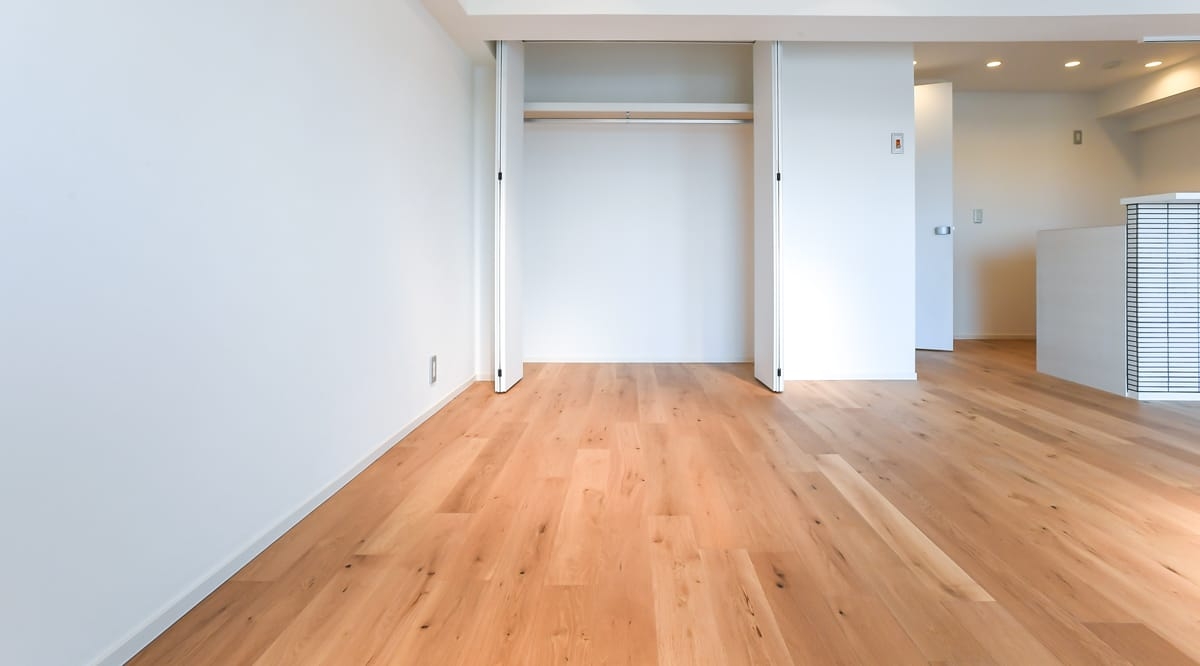 こちらのお部屋では、白を基調にしたシンプルな室内で、素材感たっぷりのオークが存在感を発揮しています。合わせる素材や色味を選ばないオーク材だからこそ、住む人の好みに合わせて柔軟にインテリアを楽しむことができる、ニュートラルな状態の「白い箱」。新生活への期待感をオークの床材がちょっと後押ししてくれる、穏やかな雰囲気のなかにもワクワクが潜んでいるお部屋です。