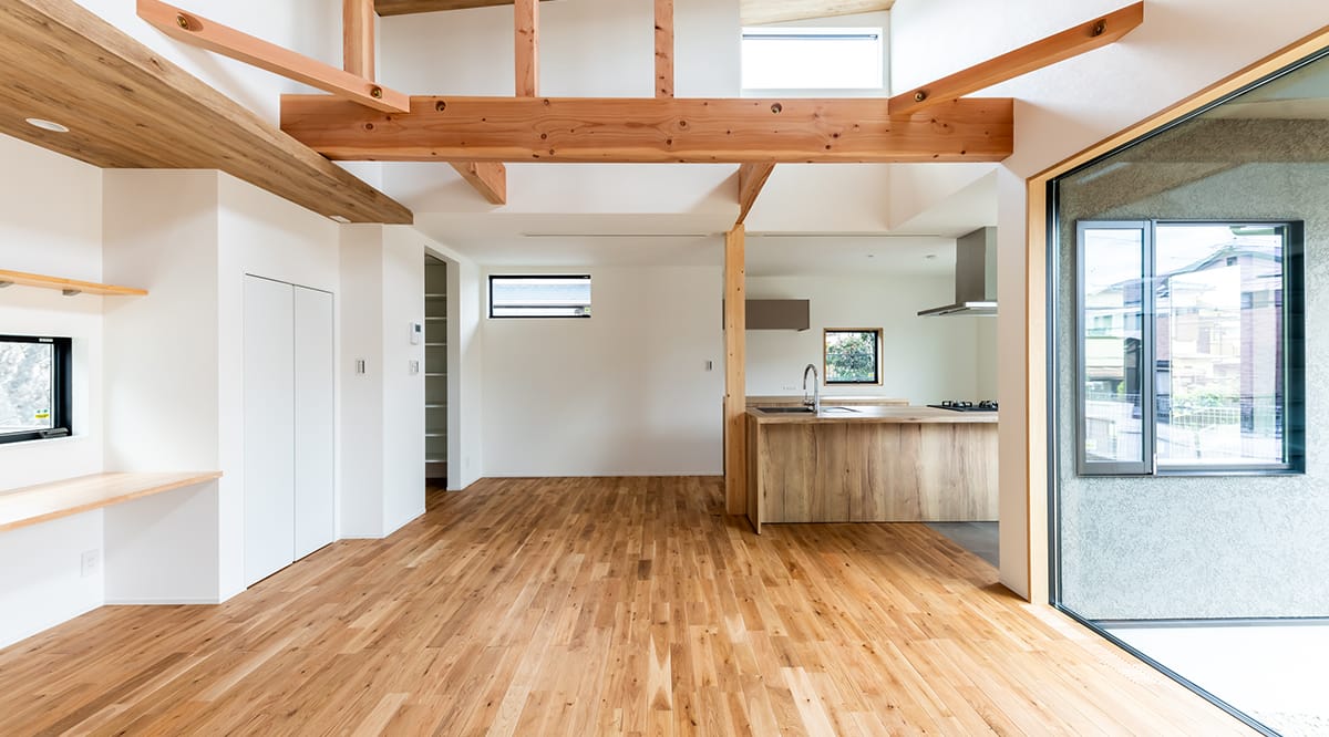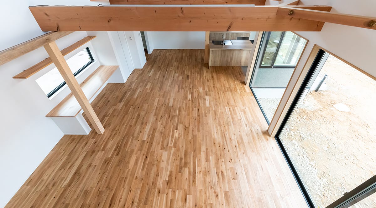 地域密着で、自然素材を活かした自由設計の「住みやすい家」を提供する、株式会社雲雀ケ丘ビルダー販売様。平屋の新築物件に、オーク・ワイルドグレードのユニタイプをご採用いただきました。