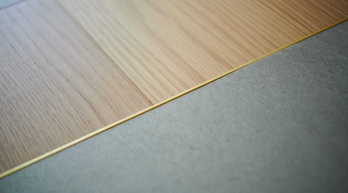 無垢フローリングドットコムの遮音フローリングは、コンクリートスラブ(下地)に直接貼るだけでL-45の遮音等級をクリアする直貼りタイプ。床材のしなりにより振動や音を吸収し階下への影響を軽減しますが、一般的なクッションフロアーよりも歩行感がしっかりしており、0.6mm厚の突板を使用してつや消しのウレタン塗装で仕上げているため、見た目にも木質フローリングらしい表情が楽しめるとご好評いただいています。