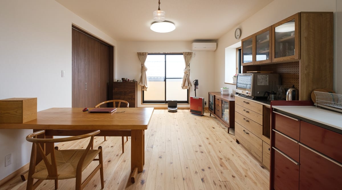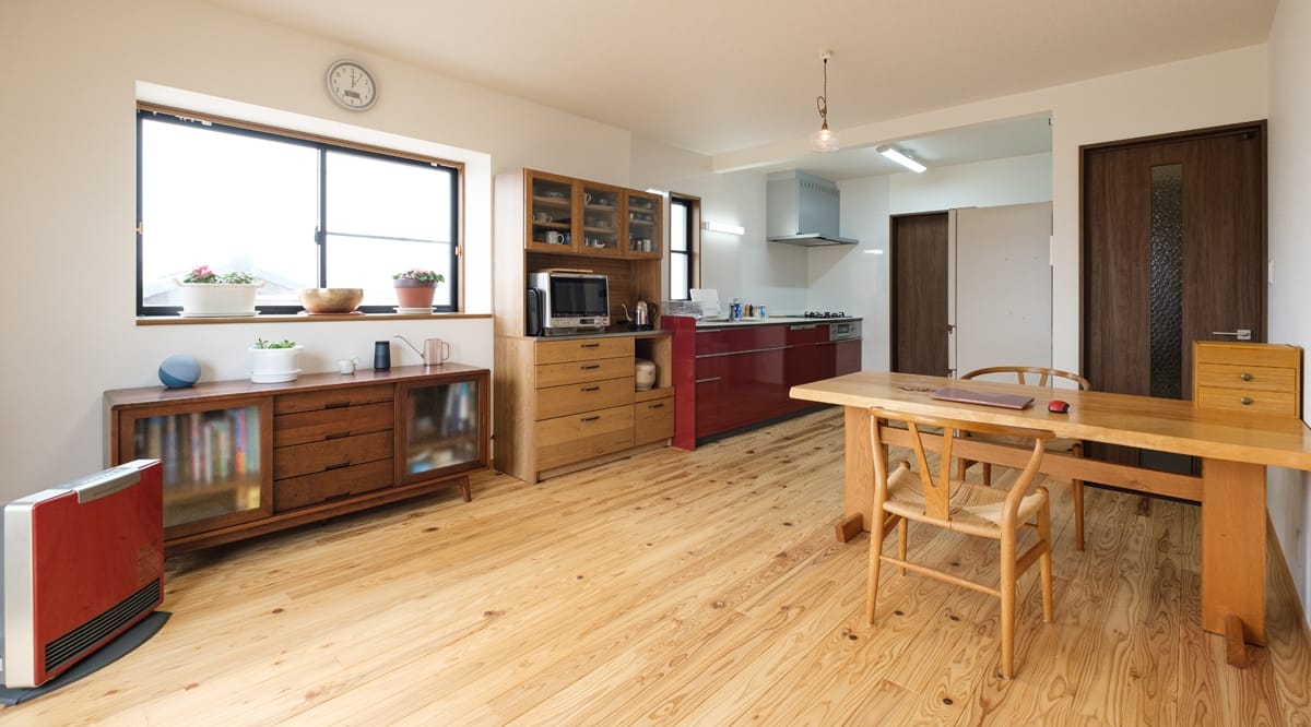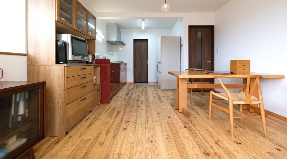 圧密加工を施した床暖房対応の杉材をご採用いただきました。そちらも是非ご確認ください。